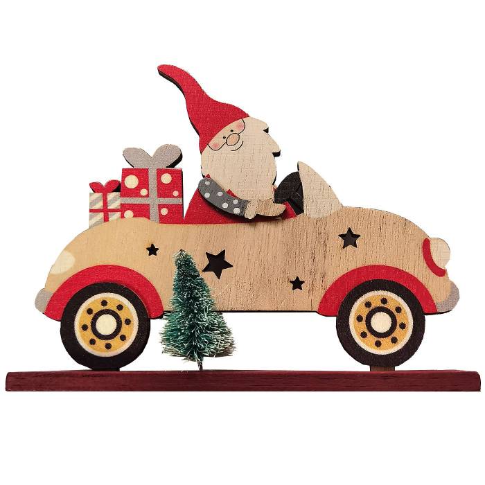 Αμάξι Ξύλινο Άγιος Βασίλης με βάση 18x11cm