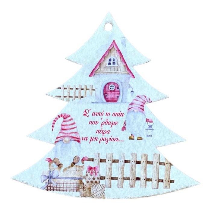 Χριστουγεννιάτικο Ξύλινο Δέντρο με κόκκινα νανάκια “Σ’αυτό το σπίτι που ‘ρθαμε πέτρα να μην ραγίσει…!!!”