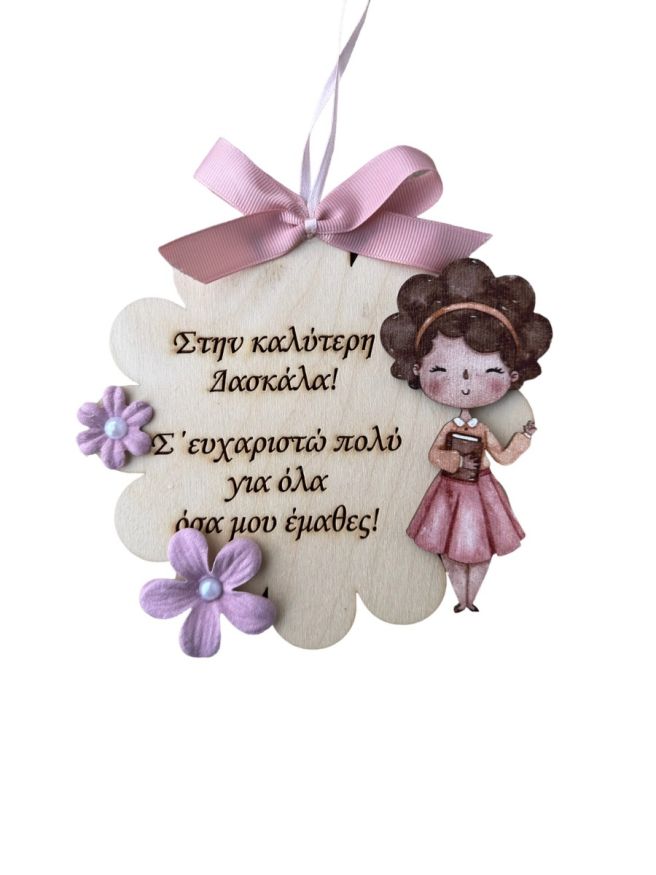 Λουλουδάκι Κρεμαστό Ξύλινο για Δασκάλα “Στην καλύτερη Δασκάλα! Σ’ευχαριστώ πολύ για όλα όσα μου έμαθες!”
