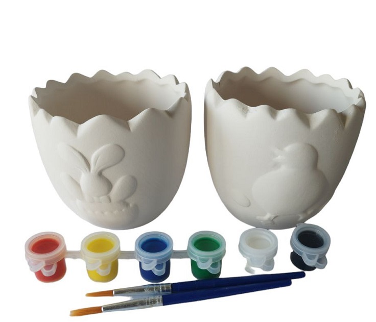 Περιέχει: 2 κεραμικά καλαθάκια 8*9cm και 6 χρώματα νερομπογιες και 2 πινέλα