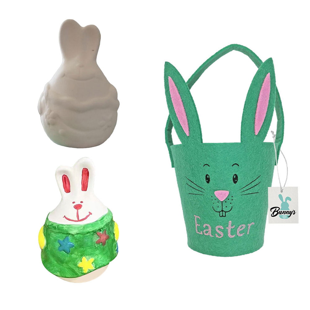 Τσόχινο καλαθάκι και Κεραμικός λαγός και νερομπογιές